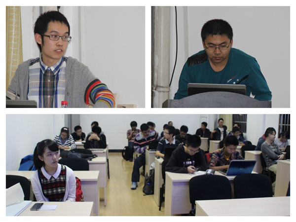 在活动中,钟鑫涛同学首先为同学们介绍了计算机设备的常识,包括CPU、内存、IO接口、硬盘、USB等各项设备参数的认识,并对各硬件生产厂家进行了介绍以及评价,同时为同学们解释了当前较为流行的“超频”、 “物理加速”等词汇,以利于学生阅读计算机相关数目。经过了40多分钟的讲解,同学们普遍对计算机的内部构造有了更为深入的了解。