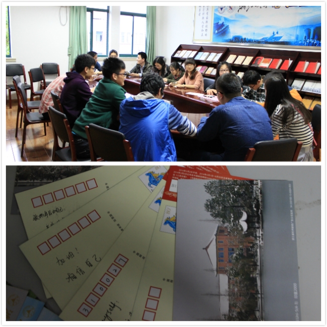 分享讨论结束后,支部向大家分发了浙大明信片,并以“写给两年后的自己”为主题向未来寄语。在此过程中,既有同学写下了对于研究生毕业的具体规划,也有同学写下了对于研究生阶段的期待和鼓励。不时还有同学聚在一起分享着彼此的明信片内容。活动在同学们融洽的交流当中落下了帷幕。