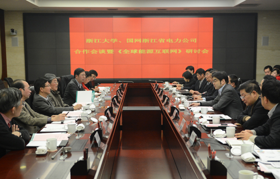 2月9日下午,在韩祯祥院士和邹晓东常务副书记的带领下,bb贝博艾弗森官方网站党政领导和相关学科负责人一行八人专程拜访了国家电网浙江省电力公司。bb贝博艾弗森官方网站、国家电网浙江省电力公司合作会谈暨《全球能源互联网》研讨会在此举行。浙江省电力公司总经理张磊、副总经理商全鸿、阙波等公司领导和部门负责人参与了会谈。双方就进一步完善战略合作机制、加强科技攻关及人才培养等合作进行座谈交流,对全球能源互联网概念的提出与实施进行研讨。浙江省电力公司副总经理商全鸿主持会议。