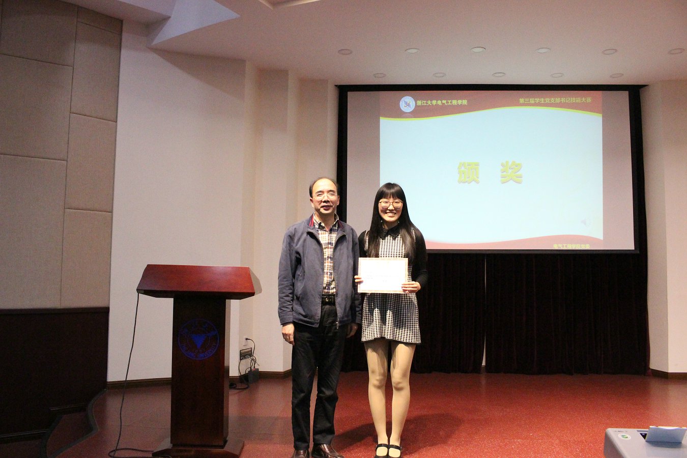 随后,主持人宣布比赛结果。颁奖结束后,王瑞飞老师进行了总结发言。王瑞飞老师肯定了本次党支部书记技能大赛的形式及取得的良好效果,通过历年的党支书技能大赛看到了电气学院学生党员实实在在的成长,强调了学生党支部在高校党建和思想政治教育中的战斗堡垒作用以及党支部书记应发挥的先锋模范作用。最后,他勉励在座学生党建骨干,要抓住机会、锻炼才能,提升综合素质、勇于承担责任,以良好的心态、开放的姿态参与各种有益的学生活动,在科研生活、社会服务等方方面面得到锻炼提高并做出良好表率。