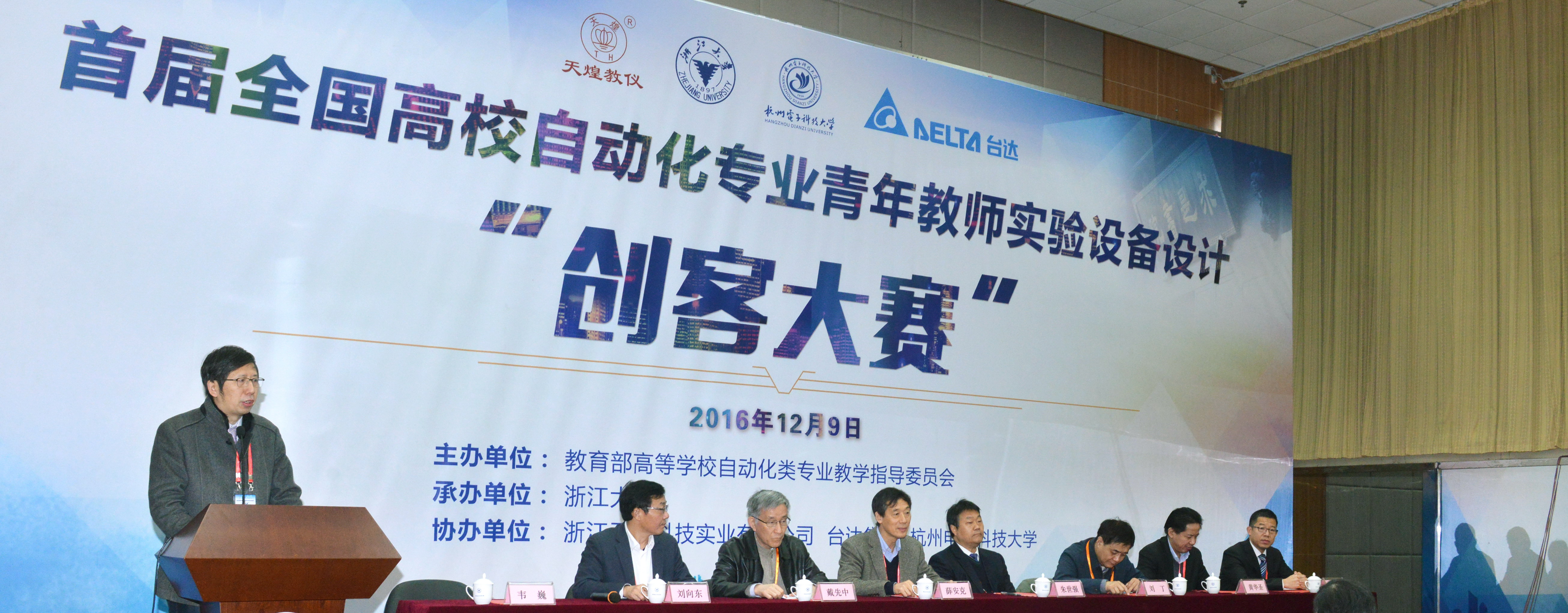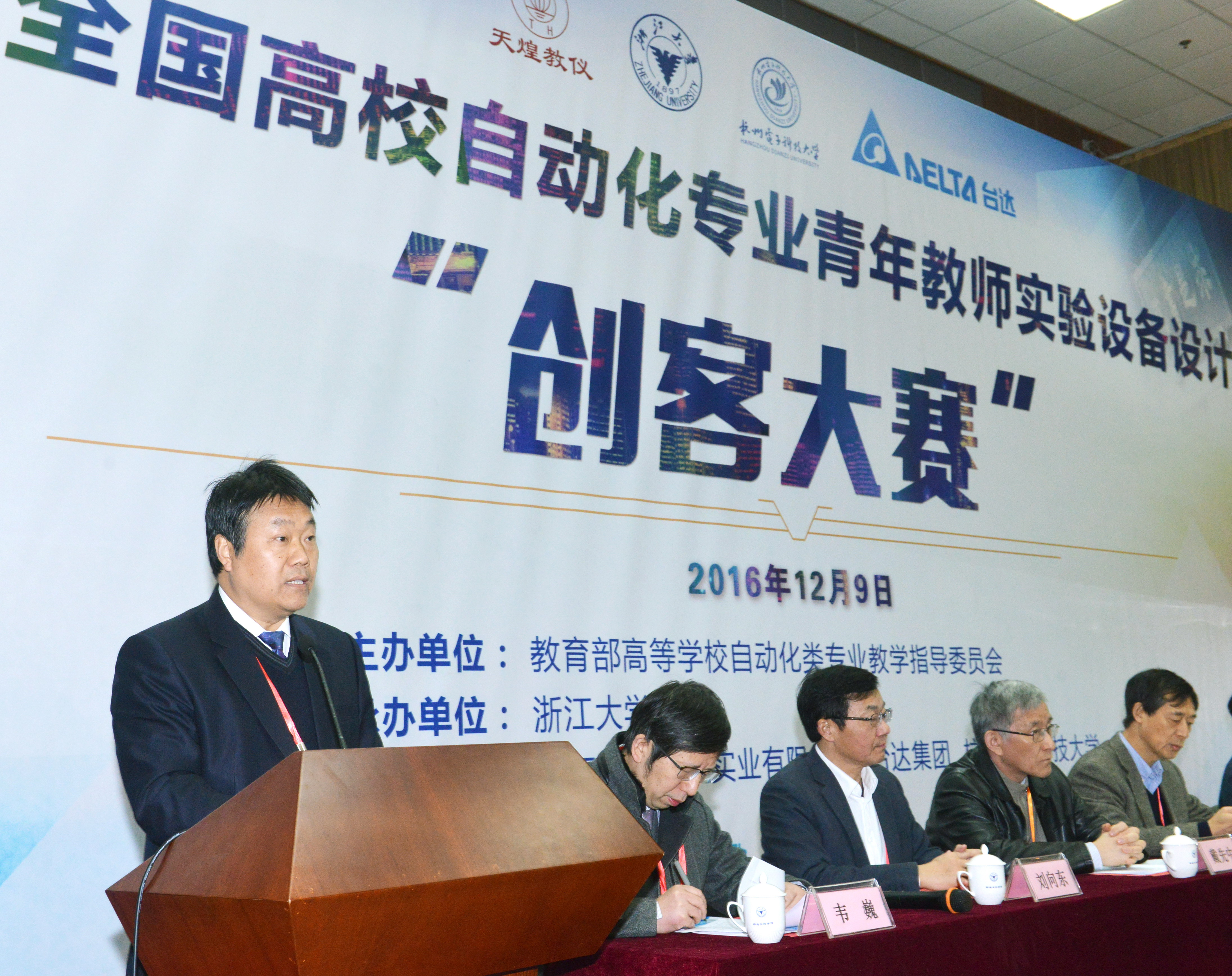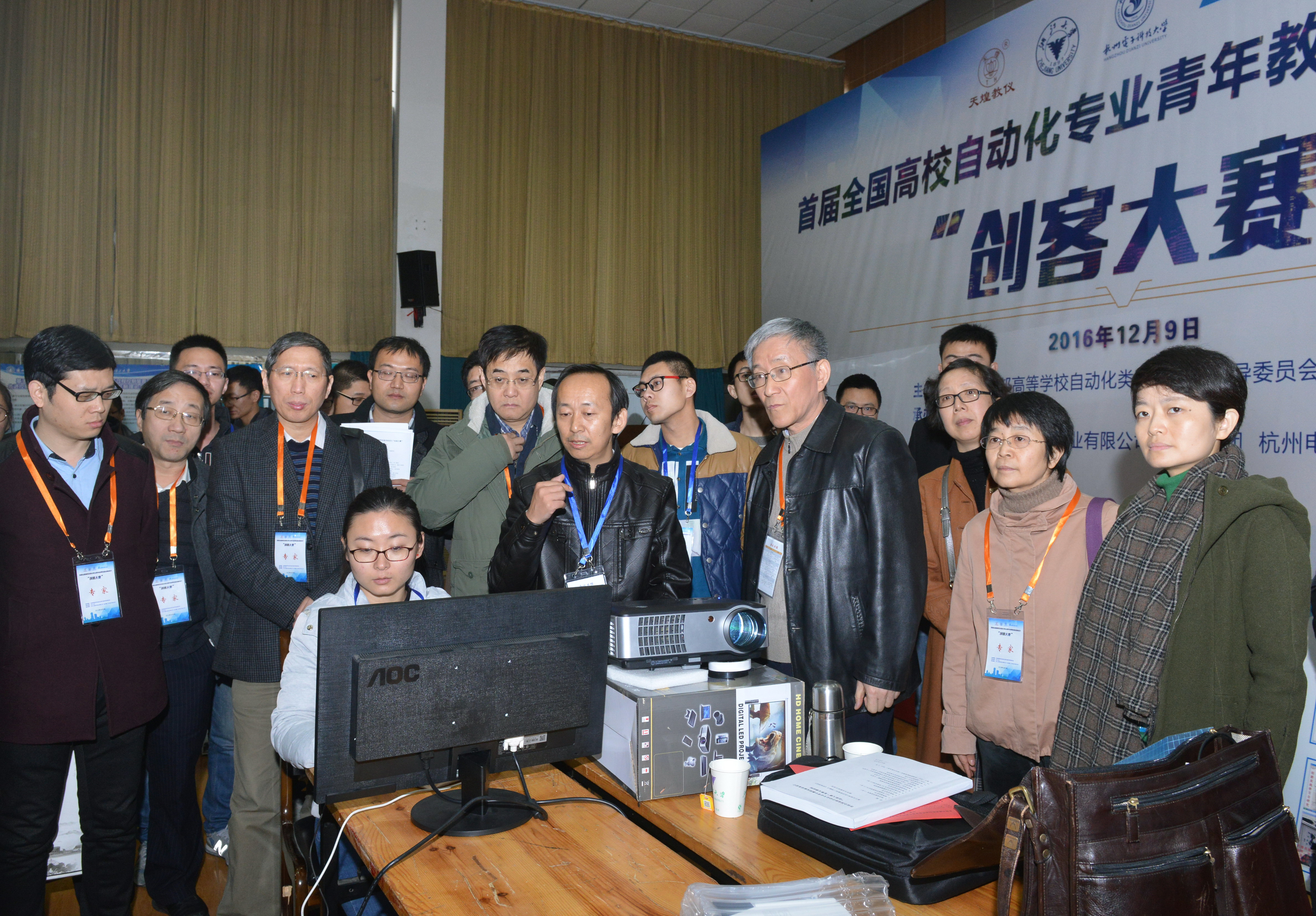 2016年12月10日至11日,首届全国高校自动化专业青年教师实验设备设计“创客大赛”在bb贝博艾弗森官方网站举行。bb贝博艾弗森官方网站党委副书记朱世强,杭州电子科技大学校长薛安克,教育部高校自动化类专业教指委副主任委员刘丁、戴先中,委员齐晓慧、俞立、王红等,中国自动化学会教育工委副主任委员孙跃,bb贝博艾弗森官方网站刘向东、张光新、马皓,杭州电子科技大学彭冬亮以及大赛赞助单位浙江天煌科技实业有限公司黄华圣、台达集团王乃全等参加了开幕式。开幕式由bb贝博艾弗森官方网站院长韦巍主持。
