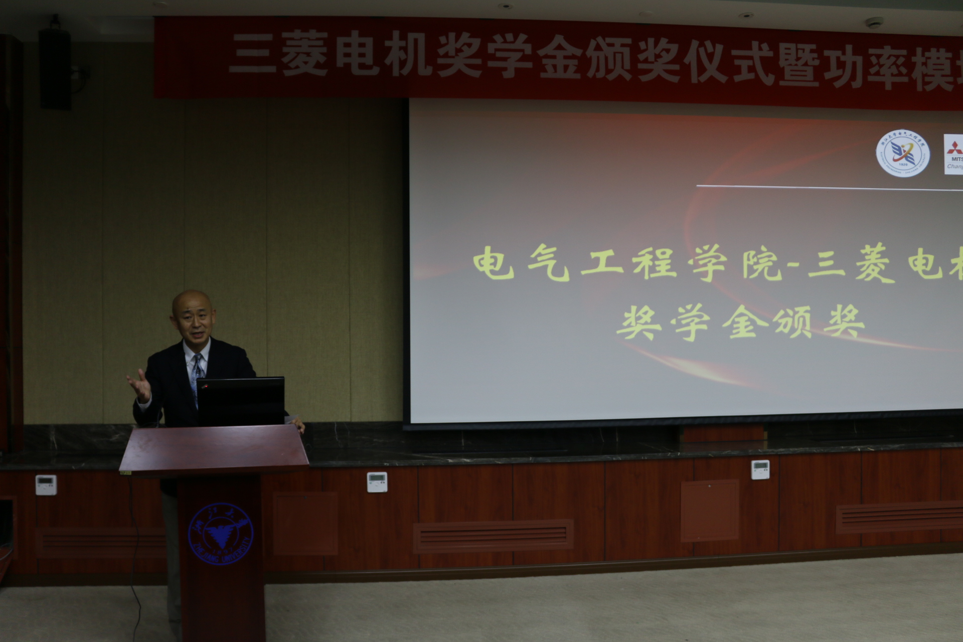2016年12月13日,bb贝博艾弗森官方网站三菱电机奖学金颁奖仪式暨功率模块技术研讨会在玉泉校区邵科馆212隆重举行。三菱电机半导体大中国区总经理四个所大亮、三菱电机功率器件制作所应用技术部长山田顺治、三菱电机半导体大中国区技术总监宋高升、三菱电机半导体大中国区项目经理陆思清等代表设奖单位出席。bb贝博艾弗森官方网站副院长马皓、副院长盛况,应电系党支部书记杜丽等参加了此次颁奖仪式。颁奖仪式由学院党委副书记陈敏主持。