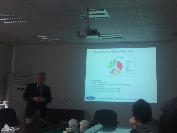 2017年2月23日上午,福特汽车公司的Michael W.Degner博士应盛况教授邀请,来访bb贝博艾弗森官方网站电气学院,并进行一场以“Developments in Automotive Power Electronics and the Outlook for SiC Semiconductors”为主题的学术讲座。报告地点在bb贝博艾弗森官方网站玉泉校区电机工程楼201会议室。Michael博士现任福特汽车公司高级技术主管,加入福特公司十八年,现致力于电动汽车方面地研究。电动汽车作为现下研究的热点方向,该讲座吸引了对电动汽车感兴趣的博士及硕士研究生参加。
