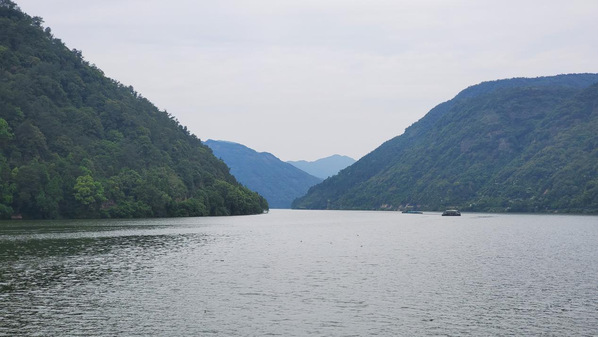 离开梅城古镇,来到七里扬帆景区。教师们登上游船,由七里扬帆姚坞码头出发,一路欣赏素以“山青、水清、史悠、境幽”享誉国内外富春江风光的精华。乘坐游船顺流而下,“七里扬帆”绿道群峰对峙,风景迷人,恍若黄公望《富春山居图》诗意再现。船到胥江野渡,大家下船登岸。胥江野渡,坐落在子胥峡入口处。据传说,战国时期名将伍子胥曾被楚王追杀逃亡至此走投无路,忽见江面飘来一叶扁舟,船夫将之渡过江面,为不向追兵透露伍子胥踪迹而刎颈自尽,这是一个感人的故事,后人为纪念这段历史而取名“子胥野渡”。