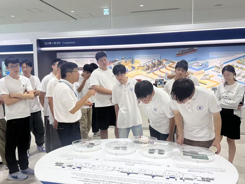 随后,雷云部长带领研学团参观了东京工厂的展厅。展厅中展出的产品涵盖广泛,包含了从虚拟电厂到自动售货机,从残次品检验分类系统到辐射检测设备。研学团成员了解了富士电机的多系列产品,也对日本制造业在精细化设计、技术转化方面的优势有了更深的体会。