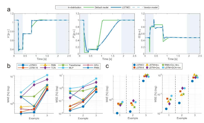 基于实际数据的验证实验表明,所提模型不仅在常规工况下精度显著优于已有物理模型,同时还展现出了优异的“外推能力”——即在面对训练数据中从未出现过的极端故障或未知工况时,模型依然能够依靠物理规律的约束,给出准确且可信的推测结果。相关研究可扩展至电力电子负荷、柔性交直流输电设备等的动态建模,该项研究为学习和模拟复杂IBRs动态特性提供了有效方法,表明神经网络模型在施加物理约束后能更好满足新型电力系统稳定分析的技术需求。